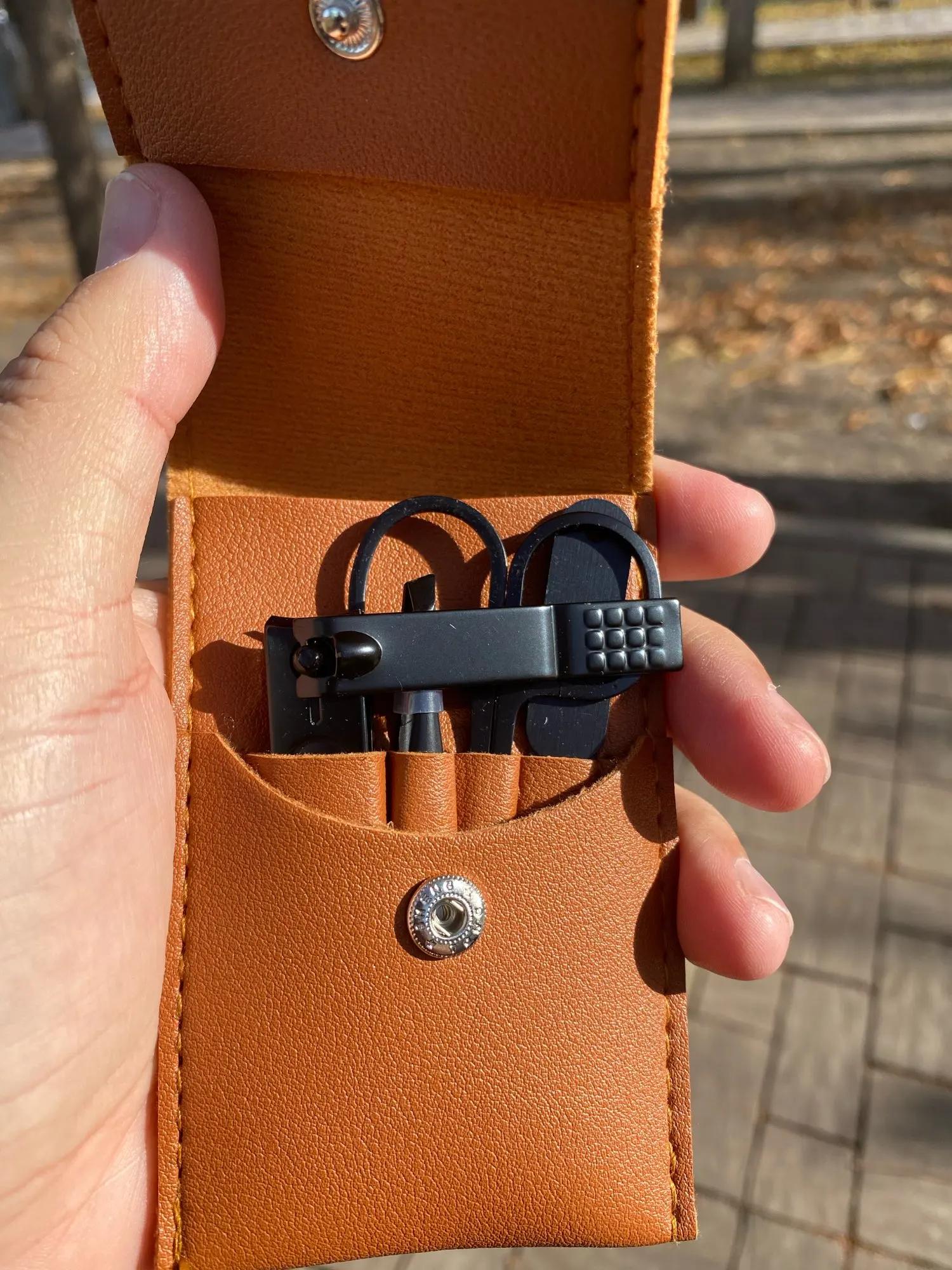 Довольно удобный набор, особенно если брать с собой в поездку, но этими ножничками можно только резать красный провод на таймере бомбы. Так что, если вы сапер-путешественик, то берите смело. Кусачки отличные, пинцет хорош и пилка тоже неплохо справляется со своей задачей.