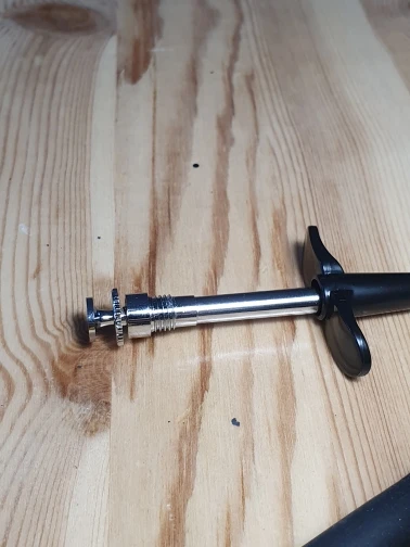 Тросик слизан с фирменного неплохо. размер точный 40 см. Нипель вращается отдельно, какая сталь- посмотрим, слижет резьбу или нет. в Зоркий, Смену, Мамию подошел. Откручивается черный держатель, что радует. стопорится в нажатом положении при отданой шайбе с накаткой. Ход плавный, пружина на мой взгляд излишне упругая. Главный бестолковый косяк- никакая фиксация шайбы с накаткой. После нескольких нажатий, или просто произвольно отдаётся, и фиксирует спуск в нажатом положении. Нужно было делать на резьбе, как у прототипа, или просто выемку в пазу, чтоб в неё шайба защелкивалась. Ведь сделали выемку для отдачи шайбы, почему для фиксации не сделали- загадка. Хорошо дремель есть, решил в минуту задачу, теперь шайба фиксируется. смотрите фото.