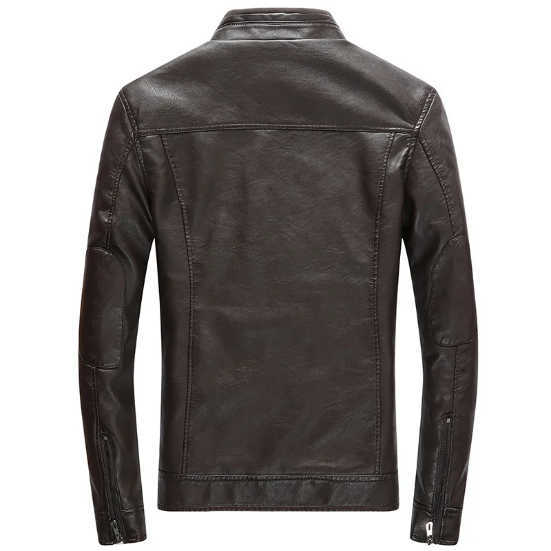 Новинка 2021, модная кожаная мужская куртка с воротником-стойкой, облегающая Байкерская модель
