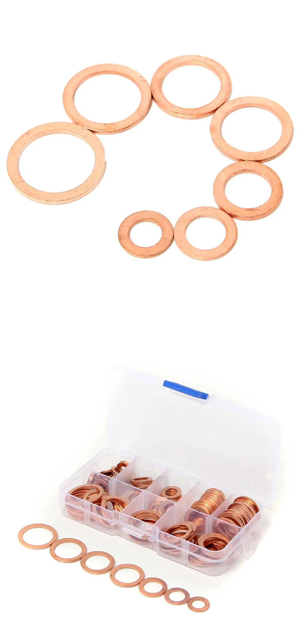 120 шт./компл. одноцветные медные шайбы Ассорти уплотнение плоское кольцо набор твердое уплотнительное кольцо сливная вилка комплектующие для масла медные шайбы