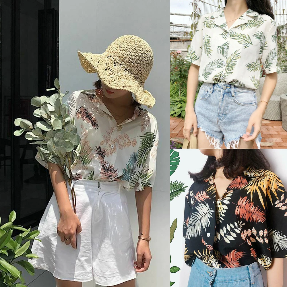 Женская Свободная блузка с принтом листьев, Повседневная пляжная бл...