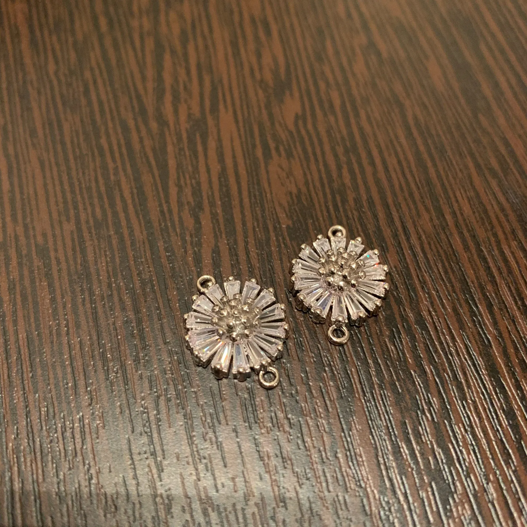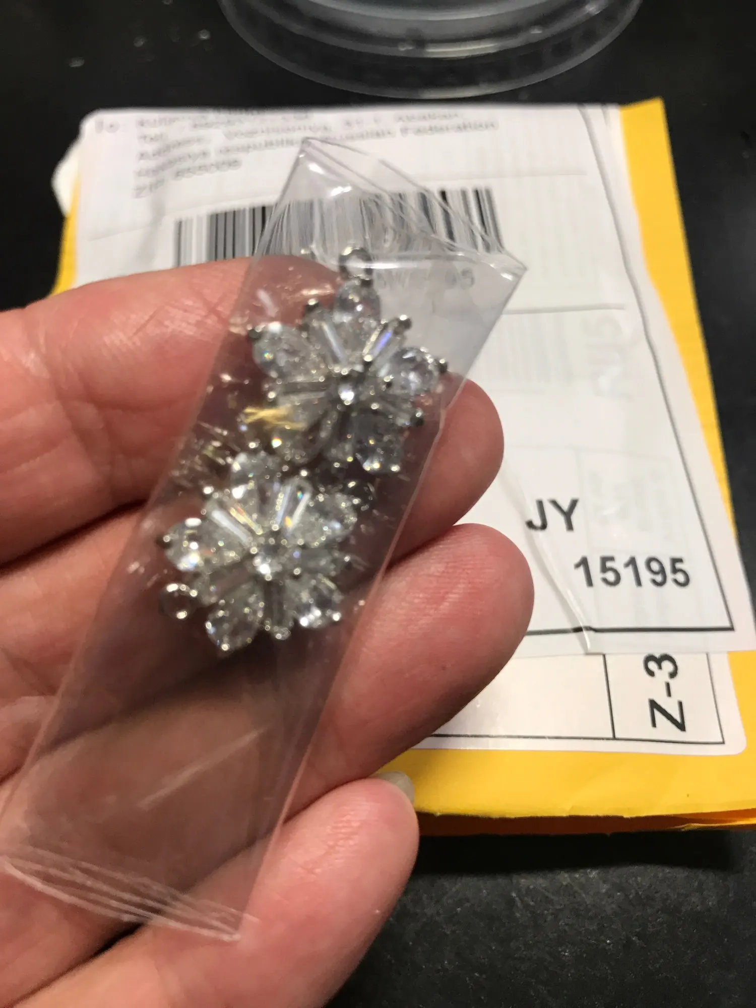 Все кристаллы на месте, но одно ушко погнуто, поправила, надеюсь не оторвётся.