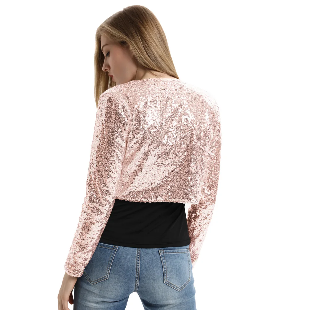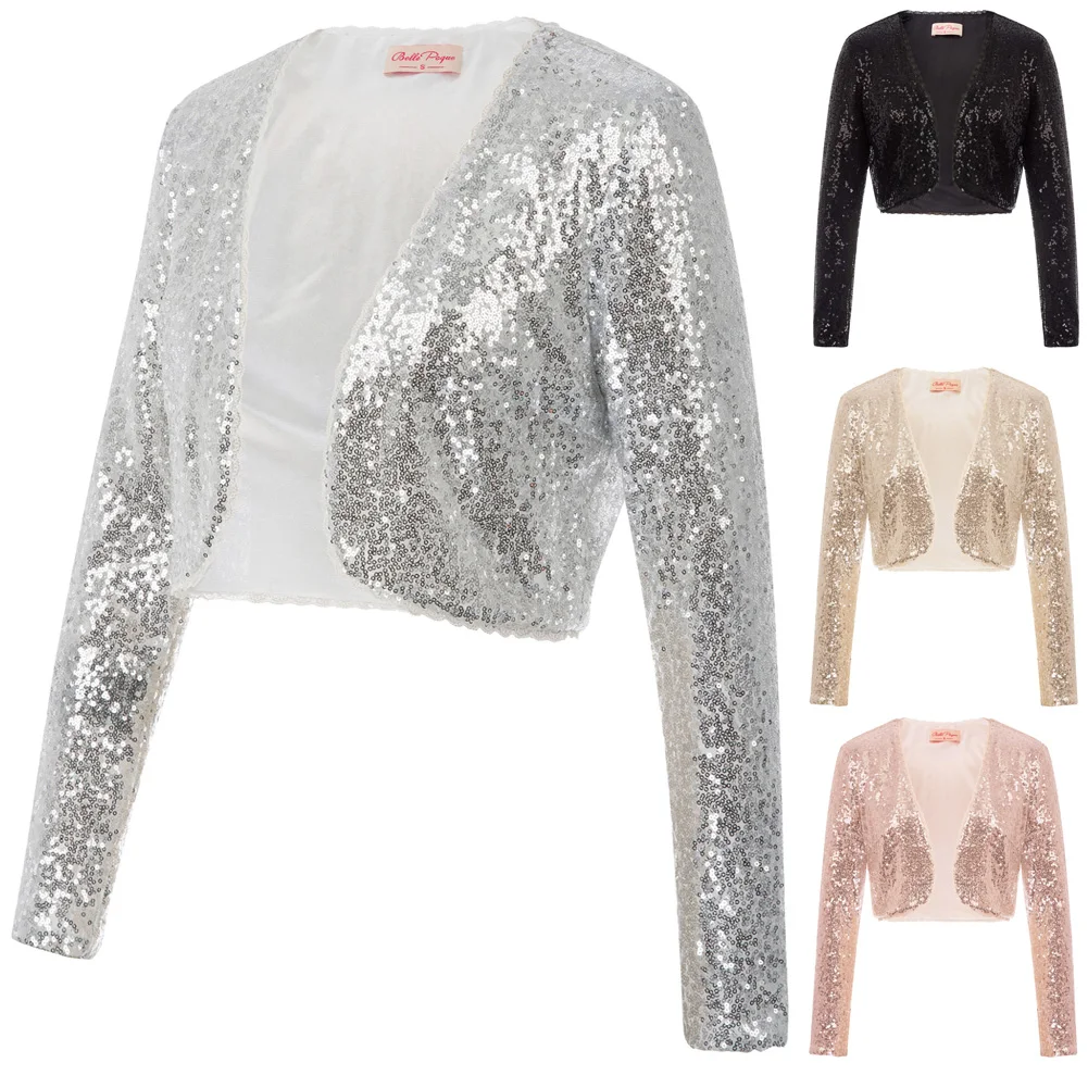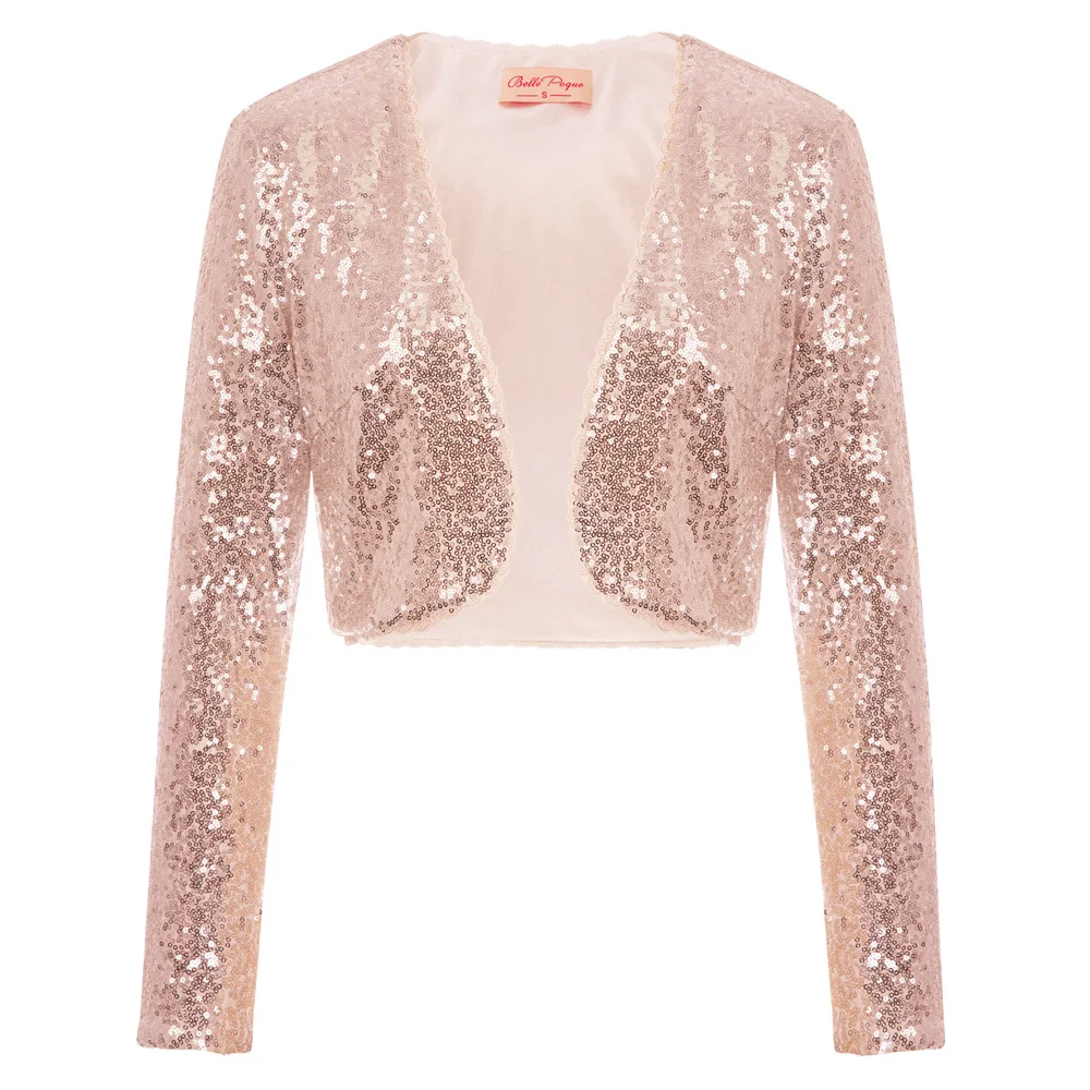 Женское короткое пальто Belle Poque, блестящее болеро с длинным рукавом и блестящими пайетками, вечерние Болеро для свадьбы, куртка клуба