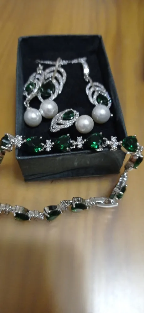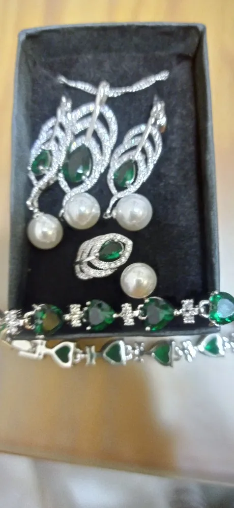 Комплект украшений очень красив. Качественно сделан, все замочки в порядке, к браслету есть дополнительное звено. В пути почти месяц, упакован в красивую коробочку, все украшения в ней были закреплены. Отправлен был очень быстро, отслеживался на всём пути. Кольцо в исходном виде, где-то 19 размер. В общем я всем довольна, спасибо продавцу!