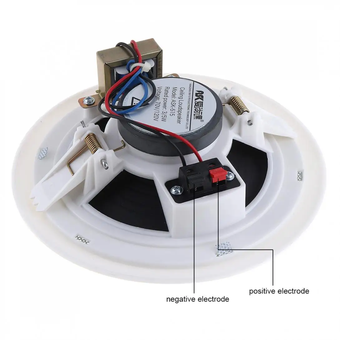 Особенности:-Простой и стильный внешний вид, Потолочные динамики с постоянным давлением, профессиональная система оповещения.-Корпус из АБС-пластика с использованием экологически чистых материалов, высокой температуры, коррозионной стойкости, не токсичен, долговечен.-Цельнометаллический пылезащитный чехол, использование профессионального металла из нержавеющей стали, защита от старения, защита от повреждений, для предотвращения укуса вредителей, продления срока службы.-Простой и удобный порт проводки, вы можете быстро связать, красный положительный, черный отрицательный.-Компактные и простые Пружинные крепежные зажимы делают установку быстрой и легкой.-Профессиональный высококачественный трансформатор, обеспечивающий стабильность системы, дальность передачи, сопротивление, безопасность и стабильность.-Акустический блок изготовлен из профессиональной композитной диафрагмы, отличной производительности естественного, чистого и стабильного качества звука.-Профессиональные материалы динамиков с высокой чувствительностью и детальным анализом звука, хороший переходный отклик, чтобы обеспечить синхронизацию фазы аудио частоты, для удовлетворения потребностей различных случаев.-Профессиональный микшерный тюнер, выходная частота комфортных ушей людей.-Модная профессиональная фоновая музыкальная система для дома, кафе, конференц-залов, супермаркетов, ресторанов, портов и других случаев.