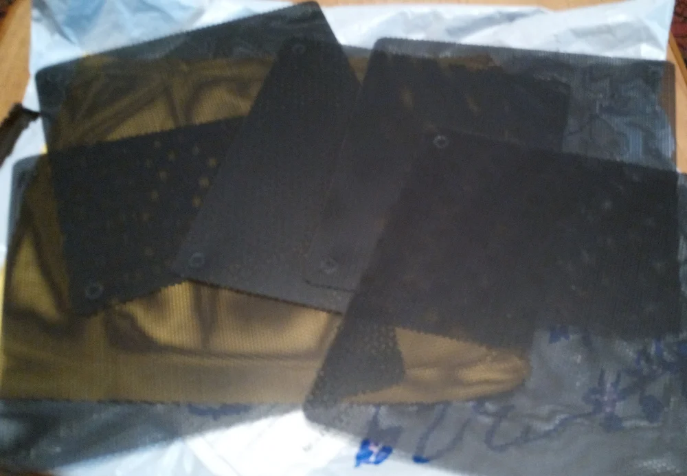Хорошая мелкая сетка. Сделана из тонких листов металла. Легко гнется и если нужно, режится ножницами. Хорошо сидят на куллерах 12 см. Коли собираетесь пользоваться ими через ещё одну сетку корпуса, то воздушный поток, по ощущениям, снижается. Не сильно, но заметно ладошкой. Немного болтаются, если установить на "жирные" комплектные винты с их узкой головкой.