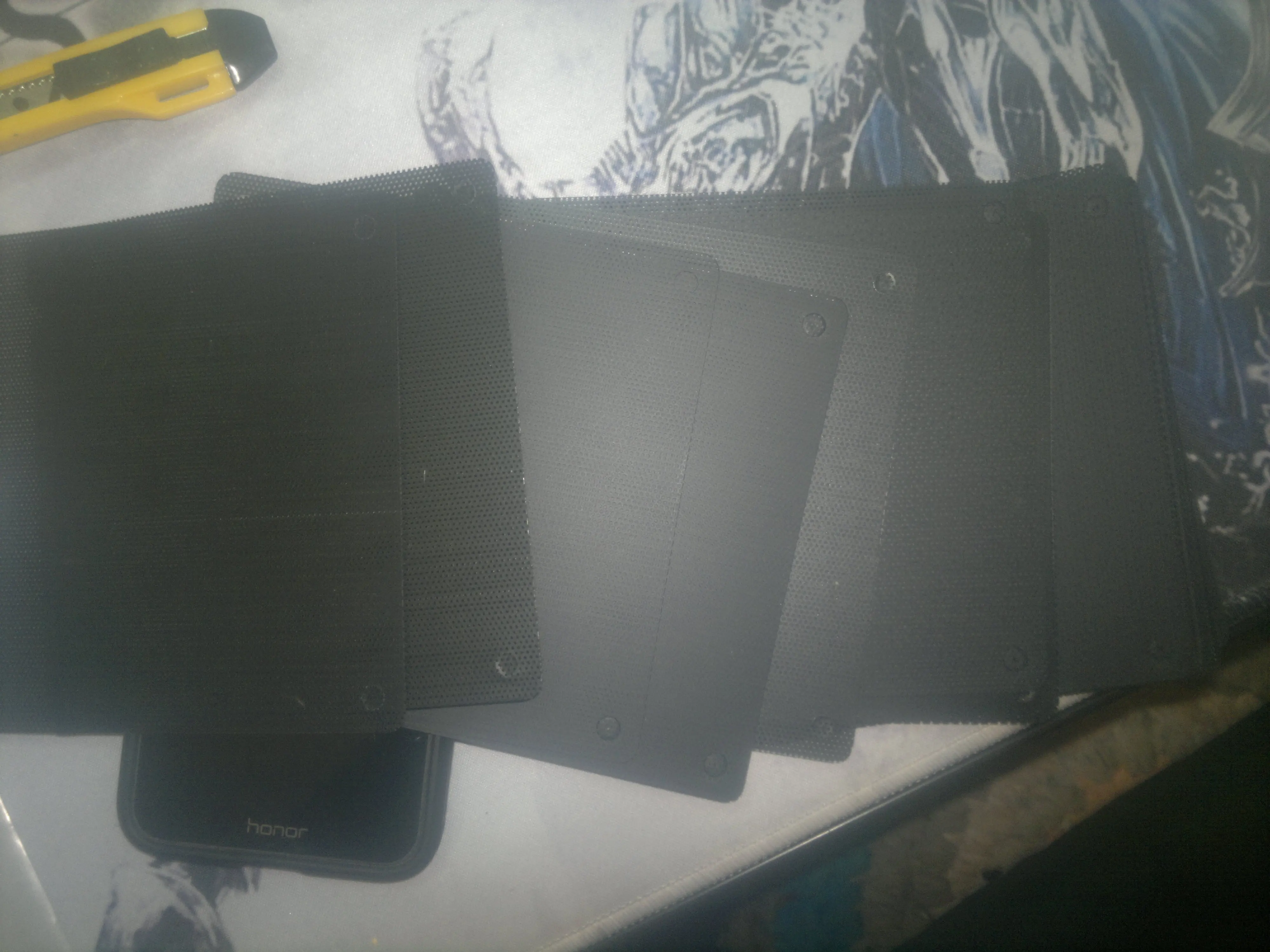 само качество очень хорошее, ячейки сетки чуть меньше стоковых фильтров на корпусе, прикрутил поверх втягивающих вентиляторов.