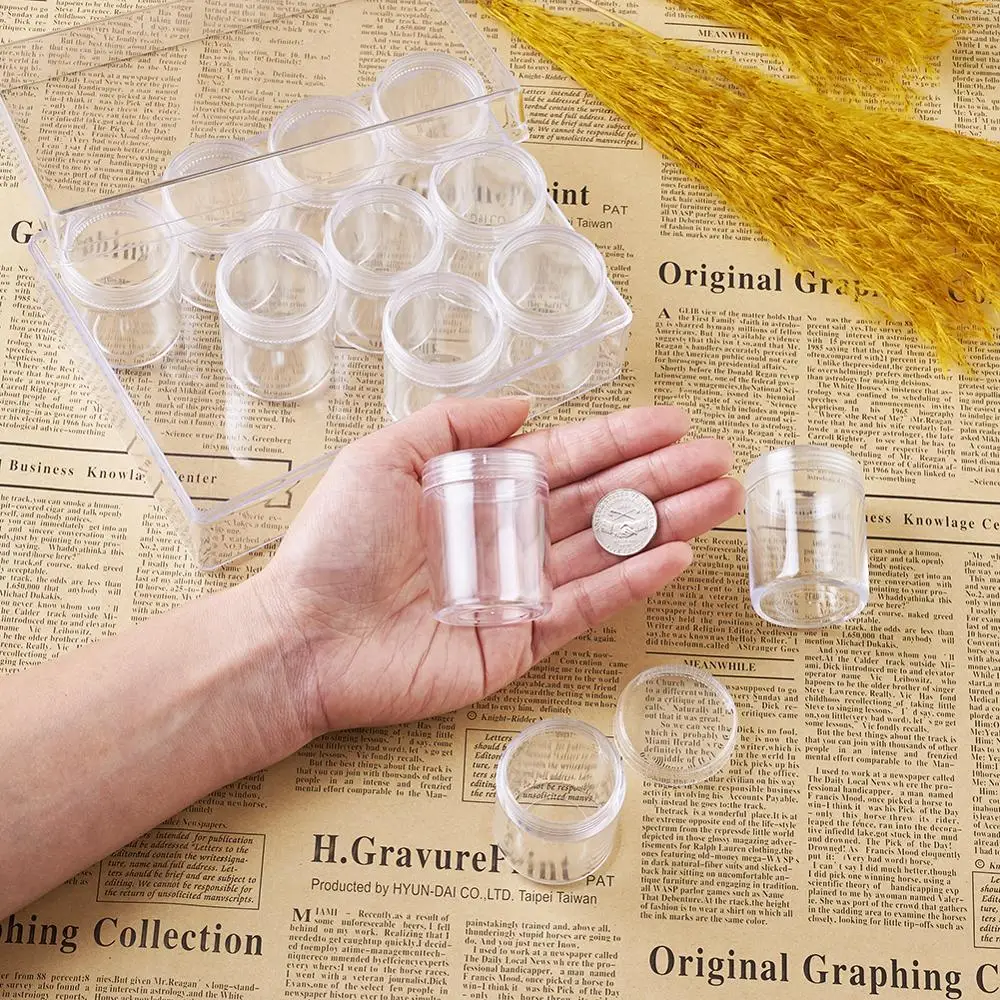 Прозрачные пластиковые контейнеры для хранения бисера, 12 шт.компл., маленькие круглые баночки, органайзер для косметики, аксессуары для ювелирных изделий