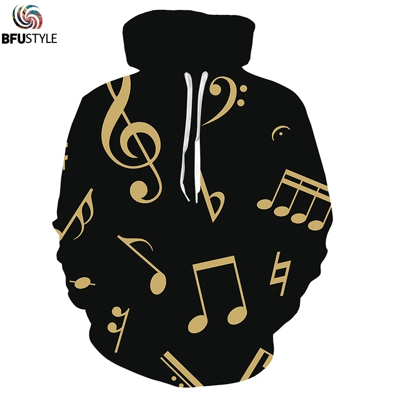 Мужские и женские толстовки с 3D принтом Music Note, повседневные топы с длинными рукавами в стиле хип-хоп, 2019