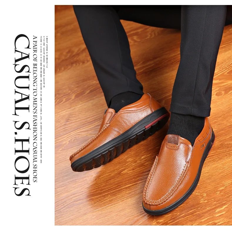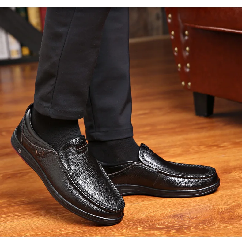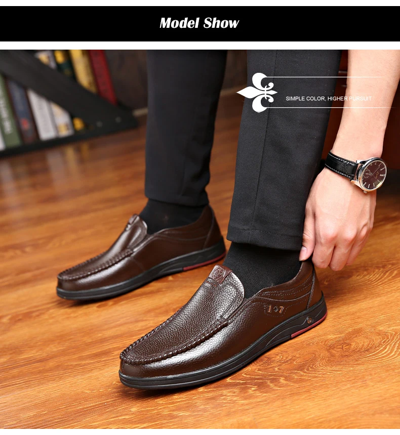 Туфли мужские из натуральной кожи, Классические мягкие лоферы, без застежки, деловой стиль, повседневная обувь на плоской подошве, дышащие