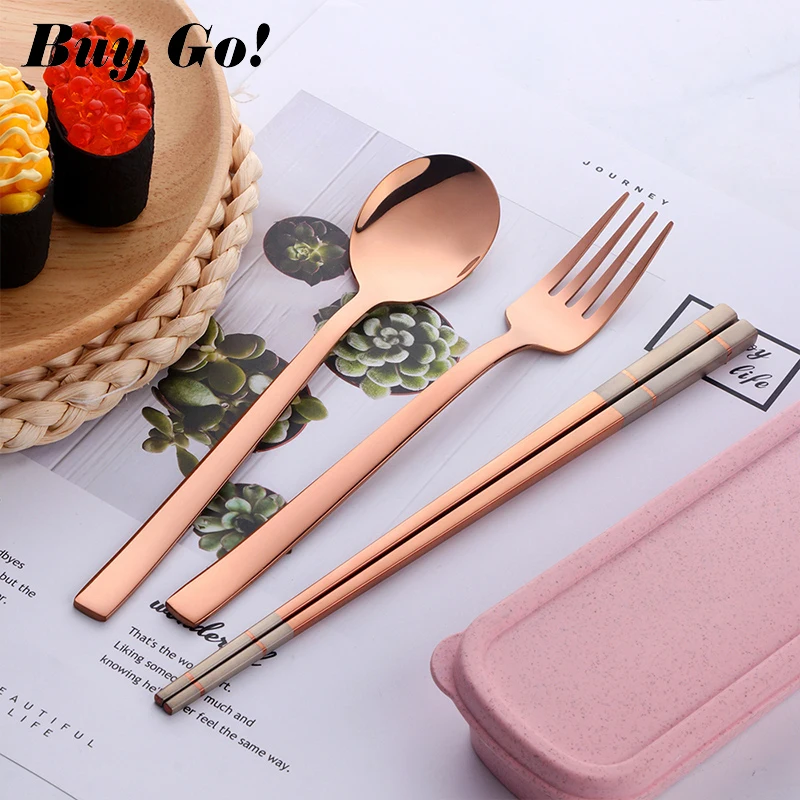 Палочки для еды из нержавеющей стали 188, 4 шт.компл., набор ложка и вилка, портативная посуда, набор дорожных столовых приборов с коробкой, детская посуда