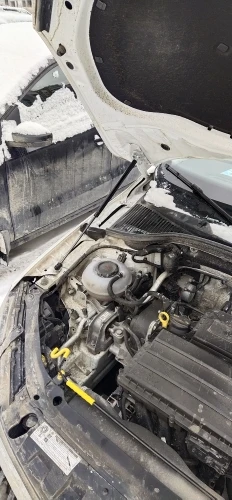 Качество нормальное, пока всё работает. Далеко не самая нужная вещь. Как здесь уже писали понадобится головка spline m10 чтобы открутить винты на петлях капота. Skoda Octavia a7 капот амортизаторы поднимают чуть выше чем кочерга.