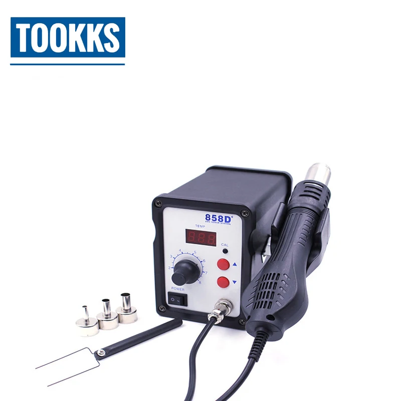 Тепловая пушка 858D + BGA, 700 Вт светодиодный светодиодная цифровая паяльная станция, для ремонта материнских плат IC, SMD, с 3 насадками