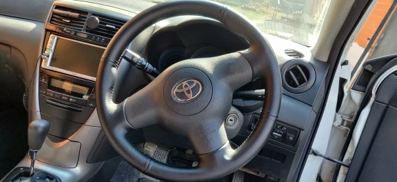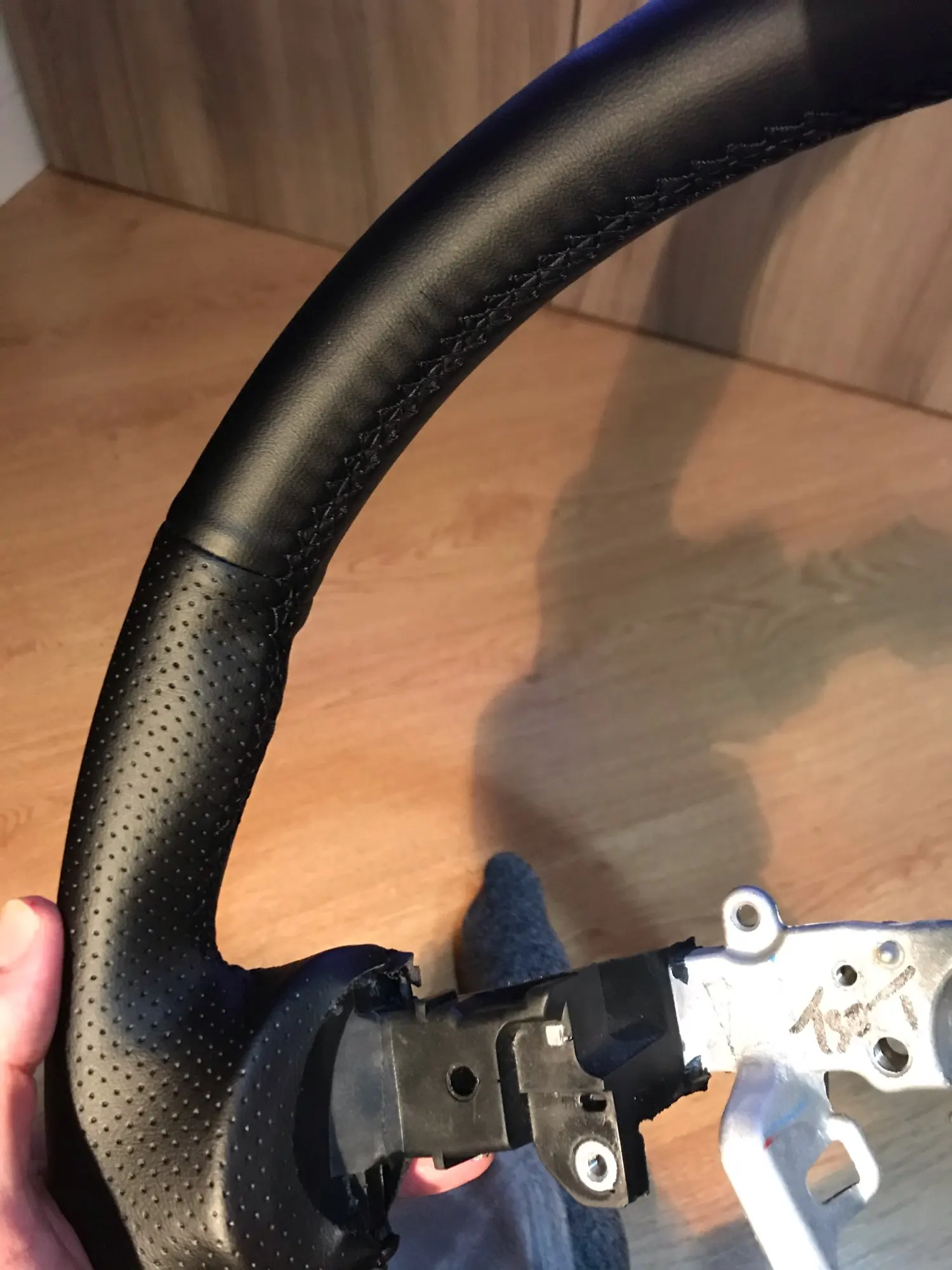 Тойота королла 2006 турчанка. Лекало почти точное, вот это почти и испортило всю картину. На спицах , особенно правый и левый, не хватает кожи по 5мм в ширину и в длину при накладывании пополам не хватает стяжков, получилось незаконченный вид (не хватает заправить под пластик в местах шва). Инструкция не дает разъяснения, как держать шов в натянутом состоянии, пока пройдешь от одной спицы к другой, вначале шов уже разошелся приходится идти назад по свободным петлям. С инструкцией вообще два дня ковырялся (шить могу, но обшивал первый раз). Рекомендую использовать пластиковые одноразовые хомуты , что бы держать шов. Видео вообще не бьет с инструкцией. Руль лучше снять. Комплект все хватает. Материал хороший. только за это три. Фото не делал, даже не заморачивался, позже покажу конечный результат.