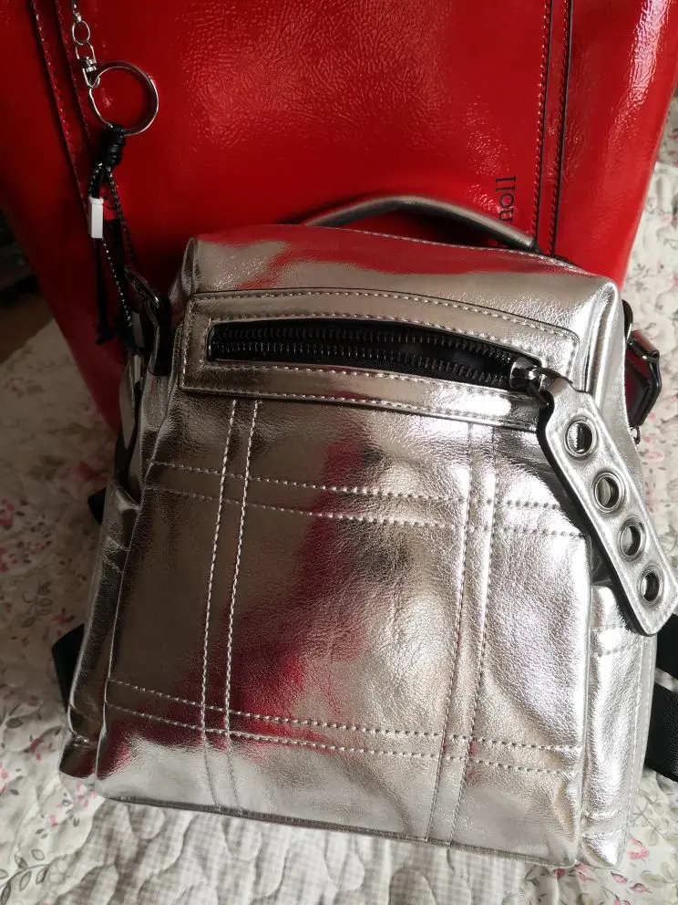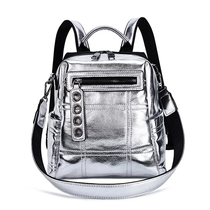 Женский Блестящий рюкзак NIGEDU, многофункциональная сумка на плечо для девочек-подростков, школьный ранец, серебристая дорожная сумка