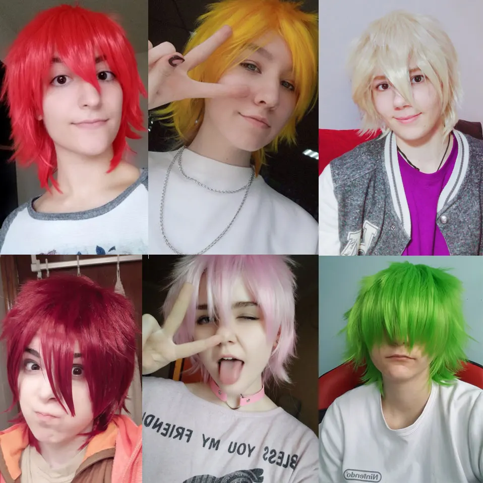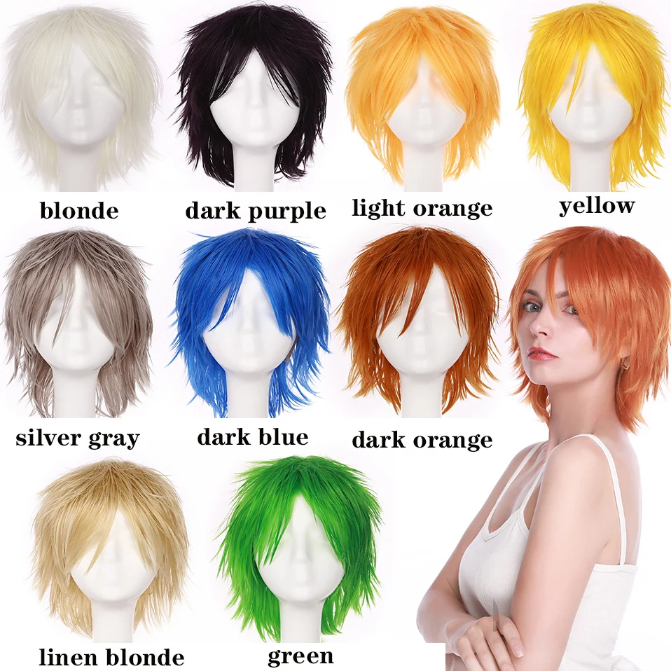 HAIRRO короткий парик для косплея Красный Розовый Синий Коричневый Белый Серый парик из синтетических прямых волос для рождественской вечеринки