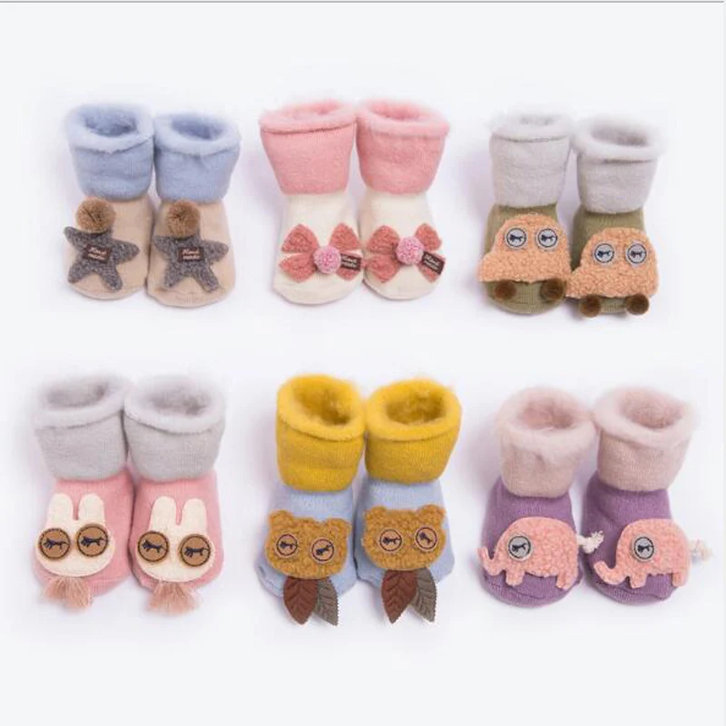 Детские махровые носки, теплые зимние толстые хлопковые носки для новорожденных мальчиков и девочек, забавные носки с животными для младенцев