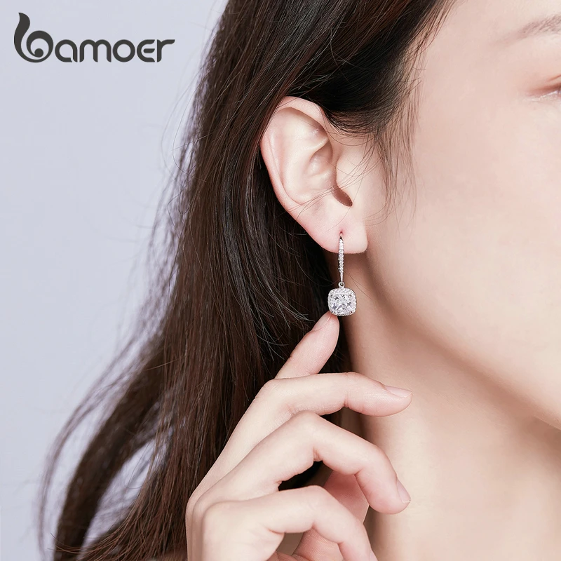 Серьги-подвески женские из серебра 925 пробы, с фианитами