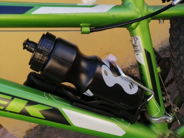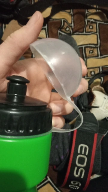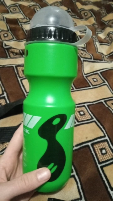 Пластик довольно дешевый, бутылка пришла немного мятая, но это не критично, плохо другое - крышка ввинчивается неплотно и, если на нее надавить извне, может выскочить, также она прокручивается, если ее ввинчивать слишком сильно. Немного протекает, если ее трясти вверх ногами, но опять таки это не критично, если бутылка покоится на велораме во время прогулок на велике по городу, но для походов, мне кажется, не подойдет. Но за свою стоимость грех жаловаться, я ее для велика брал, и все одно лучше обычной бутылки из-под питьевой воды