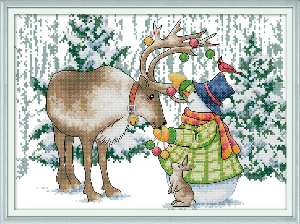 Joy Sunday Лось и снеговик домашний декор картины напечатанные на холсте DMC 11CT 14CT DIY ручной вышивки крестом наборы с вышивкой
