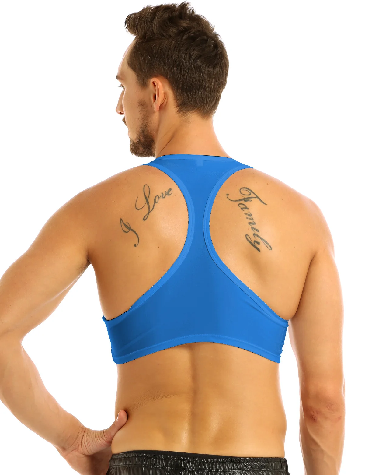 Мужской УКОРОЧЕННЫЙ ТОПИК, без рукавов, с полужилетом, для летней гимнастики, диджея, танцев, клубной одежды