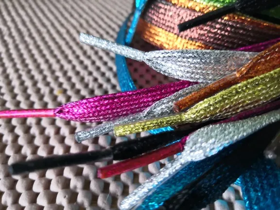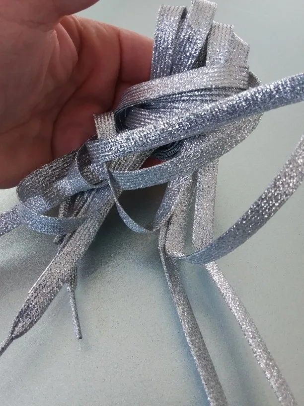 Шнурки для обуви, глянцевый золотистый Серебристый ниток, 110 см, 1 пара