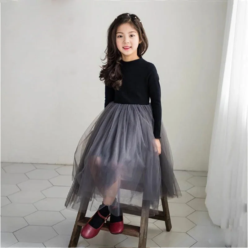 Осенне-зимнее платье для девочек, детская одежда, модные сетчатые платья с длинными рукавами, бальное платье для девочек RT313
