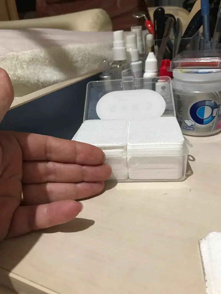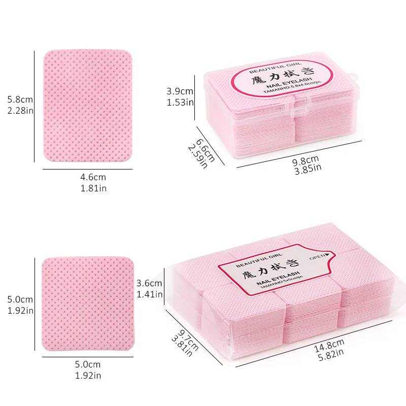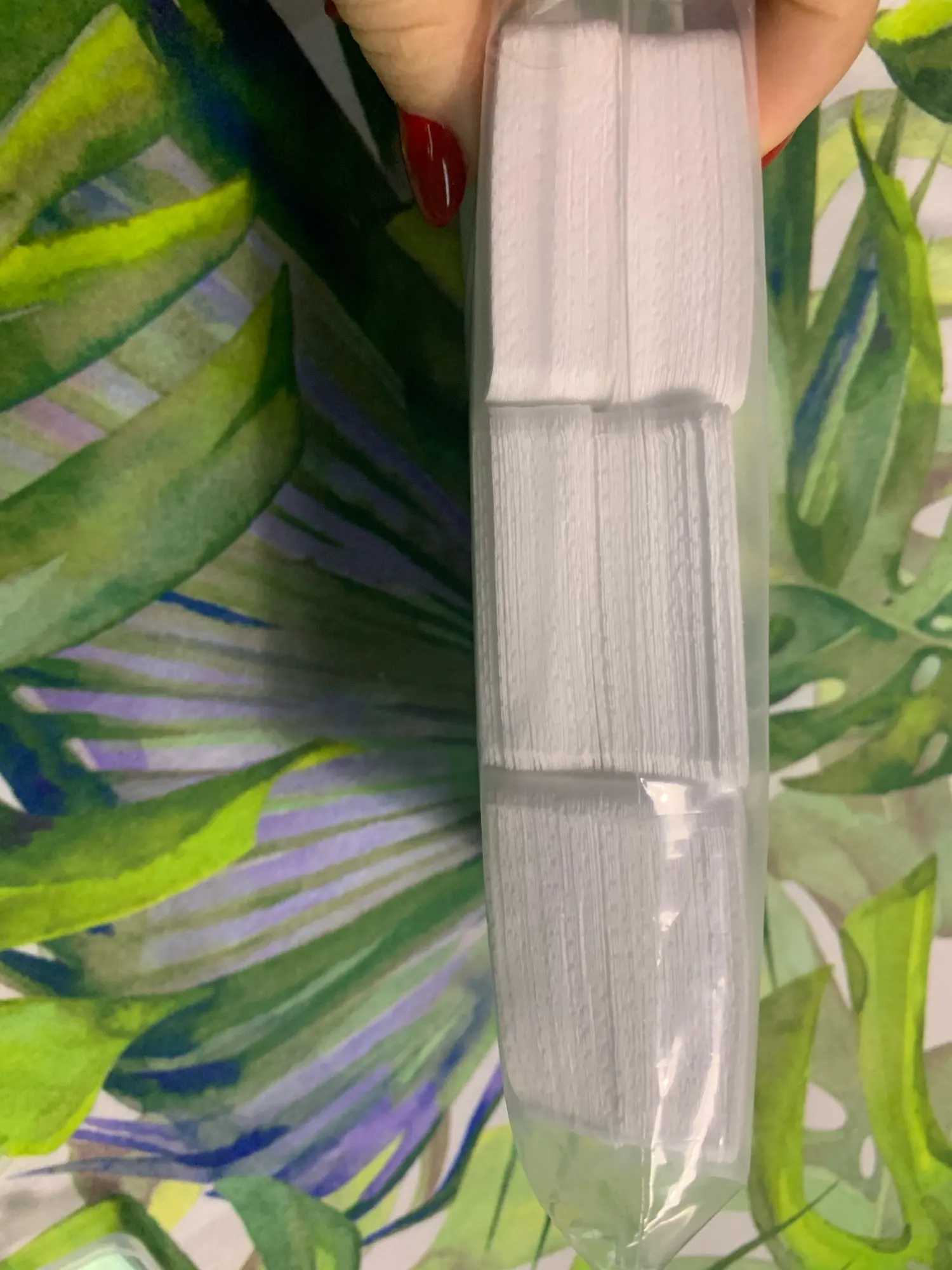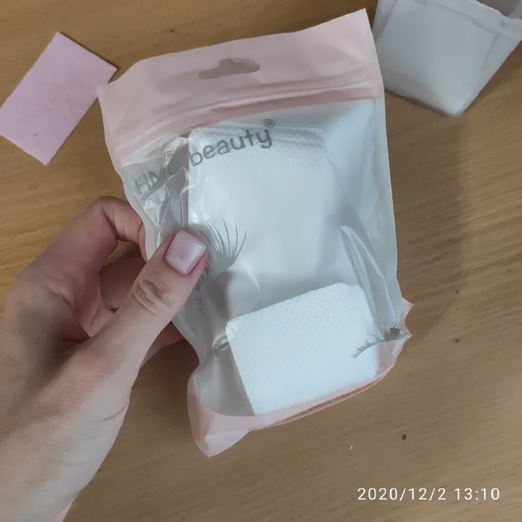 Брала салфетки для маникюра, не подходят. Так как они бумажные, намокают и остаётся бумага на ногтях. Но они идут для клея от ресниц, так что я без претензий. Попробовала для своей работы!