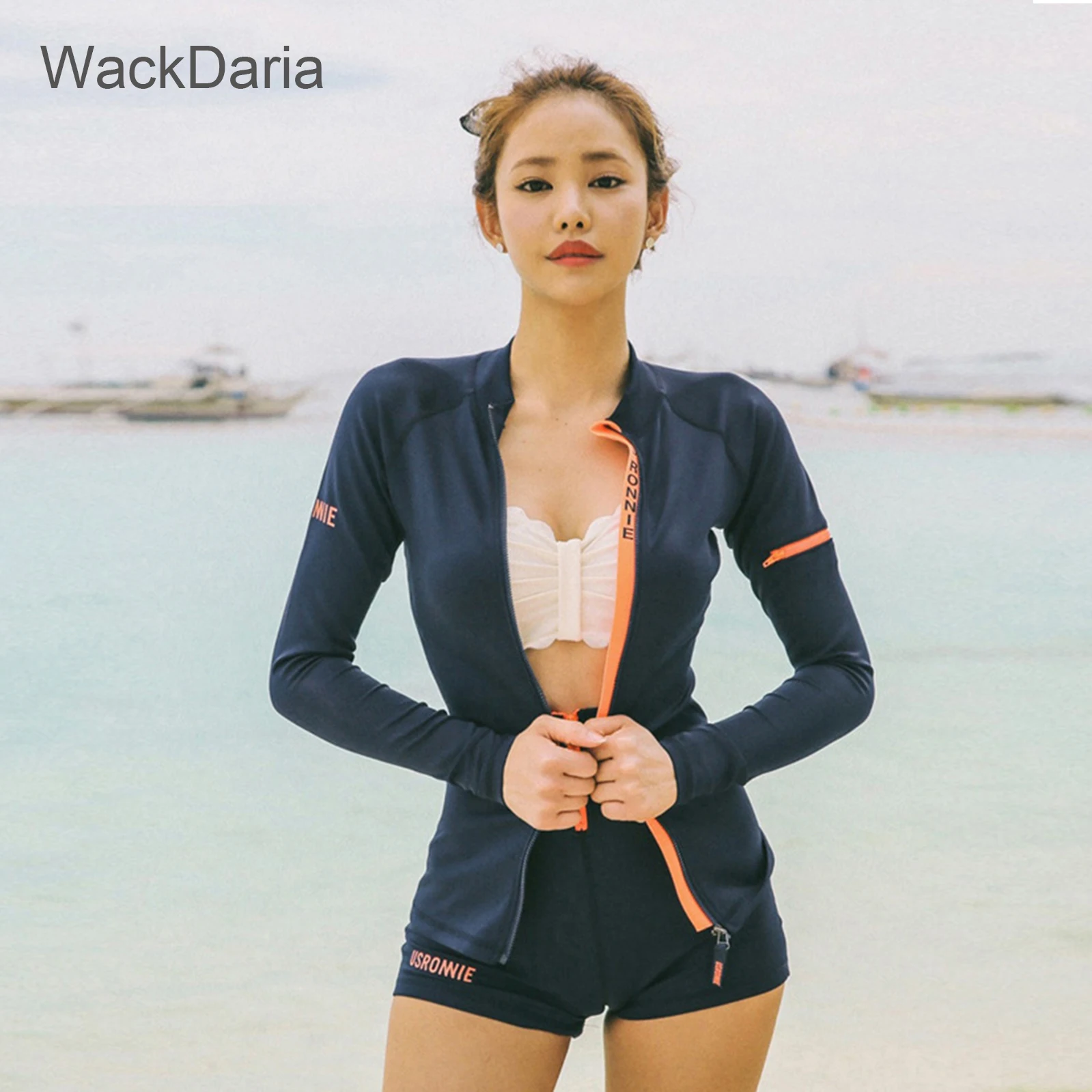 Женский купальник WackDaria, из 3 предметов, с длинным рукавом, с принтом в стиле пэчворк, летний