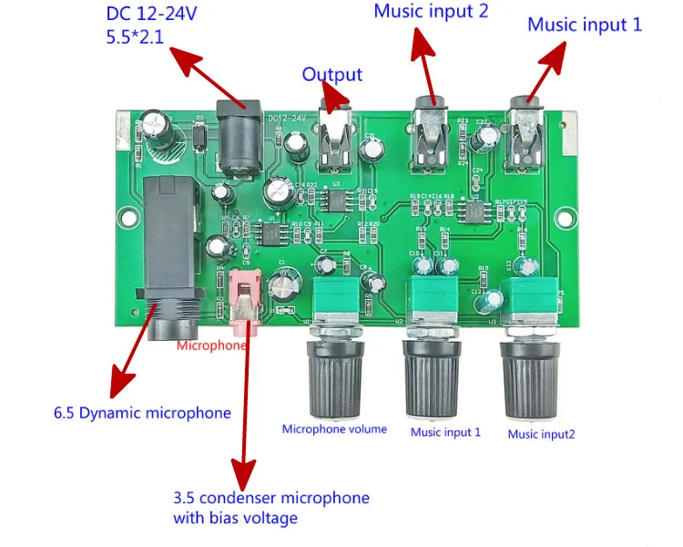 Музыкальный предусилитель GHXAMP, двухсторонний усилитель микрофона, плата микширования, компьютерная аудио Плата сигнальный микшер, DC12-24V