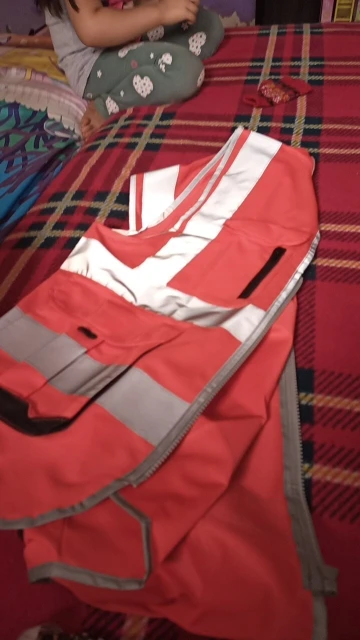 Эта куртка идеальна, я надел ее по утрам, когда настанет ночь, поверх своего пальто, когда я буду работать с моим электрическим скутером. Светоотражающие Полоски видны издалека, качество очень хорошее, куртка прочная. Я рекомендую!