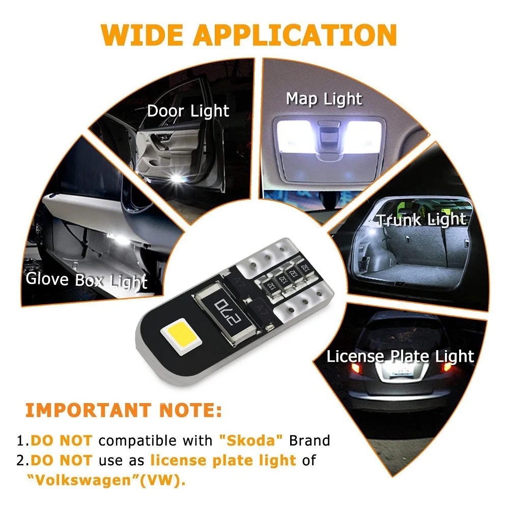 Общее использование для интерьера (карта, купол, груз, дверь вежливость) светильник, багажник светильник, купольный светильник, светильник для чтения и т. Д.Этот светодиод не подходит для всех моделей автомобилей skoda. Он можетНе могут быть использованы в качестве светодиодные боковые чайник отложным воротником светильник и номерной знакСветильник. Место установки только для справки
