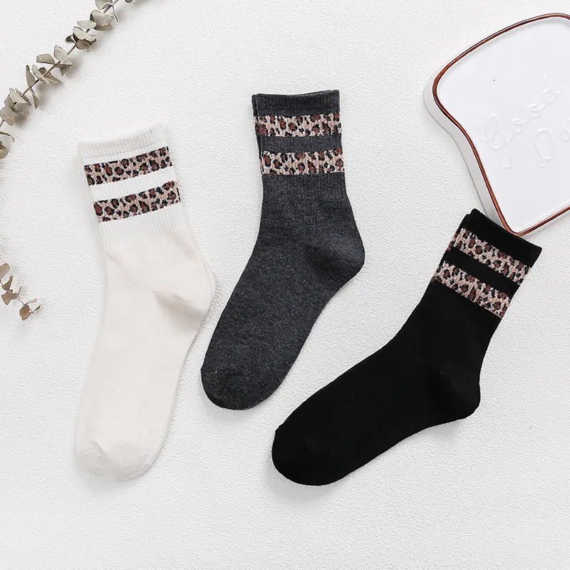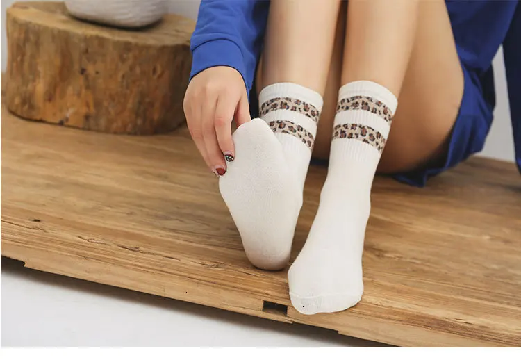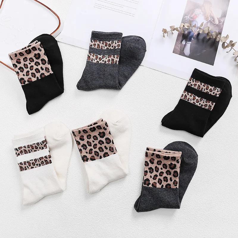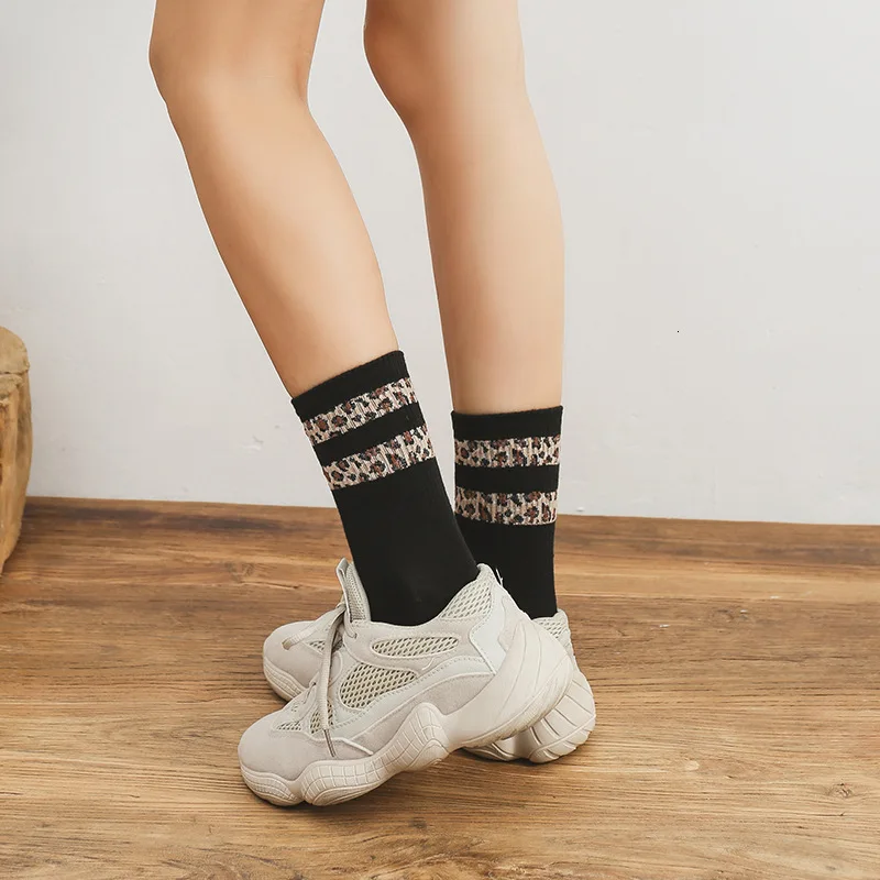Носки женские, полосатые, с леопардовым принтом, 1 пара = 2 шт. ms24