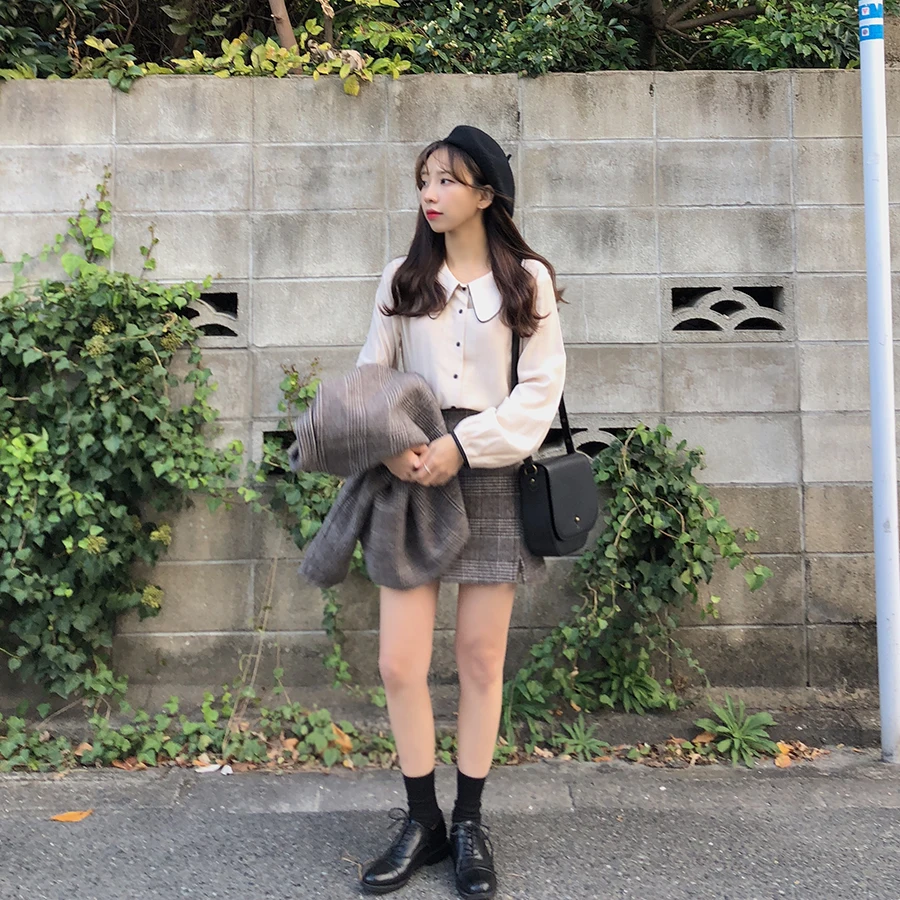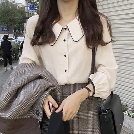 Милые сладкие Топы Женская рубашка в Корейском стиле с длинным рука...