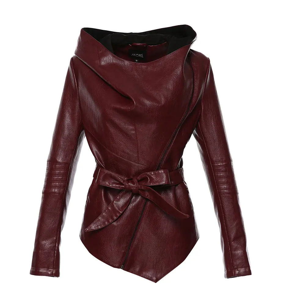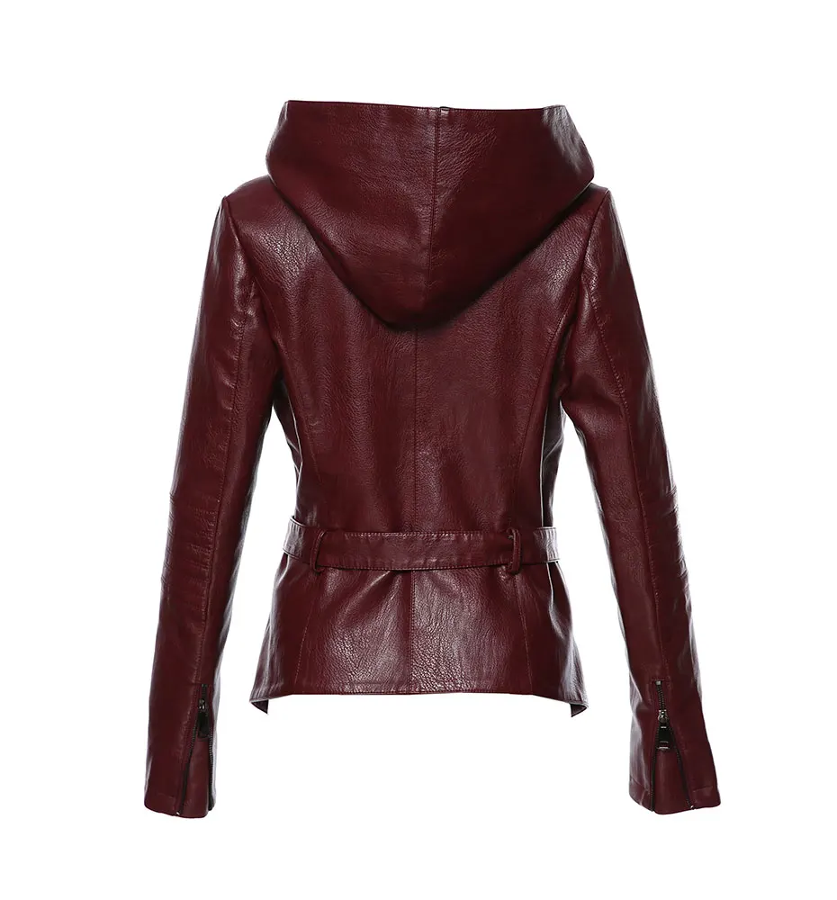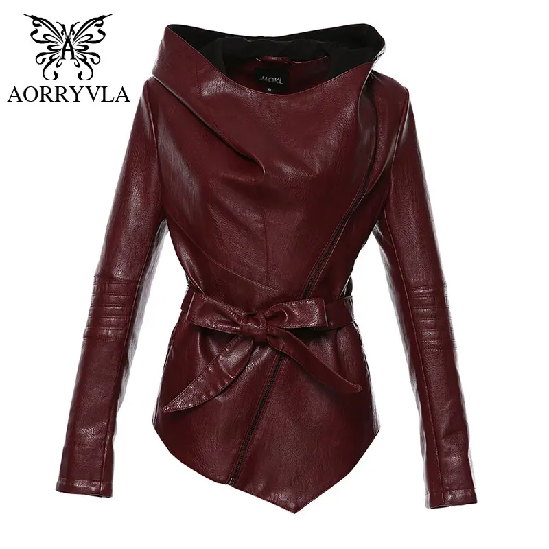 AORRYVLA 2020 новая осенняя женская кожаная куртка с капюшоном с длинным рукавом, Короткая Повседневная Черная косуха женская куртка из искусственной кожи с поясом