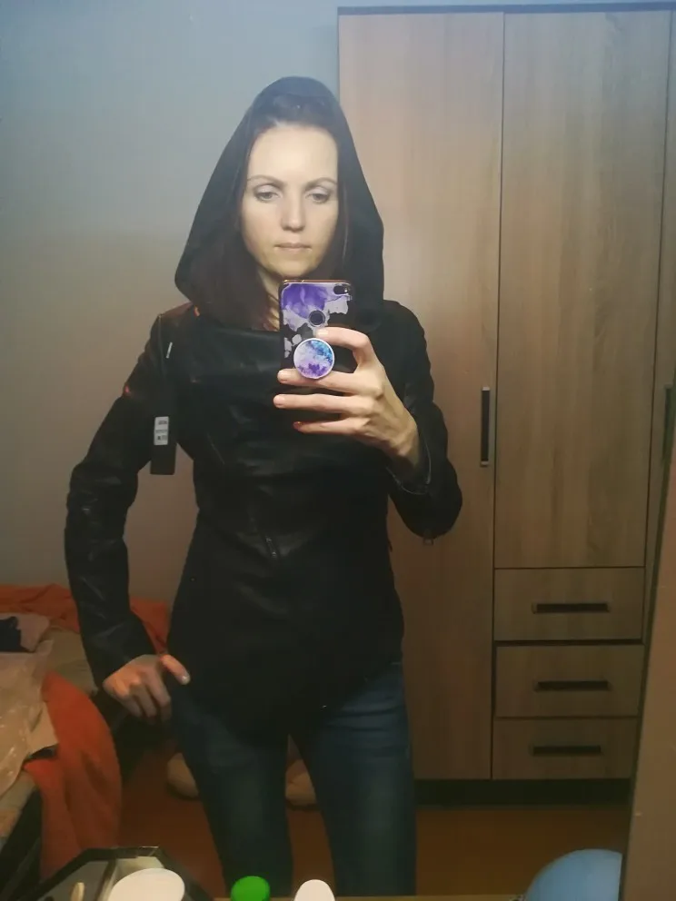 Очень хорошая, стильная и красивая курточка. На мой размер 94-73-101 стоило, наверное, взять на размер больше. А так в бедрах туговато, слишком обтягивает живот. А в груди и талии хорошо.