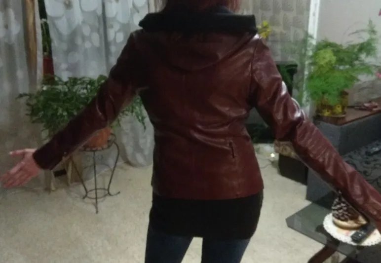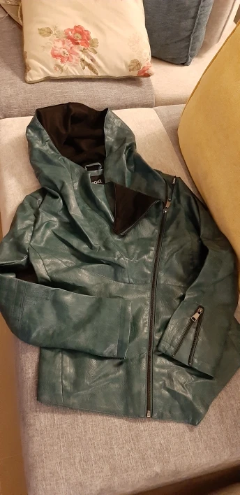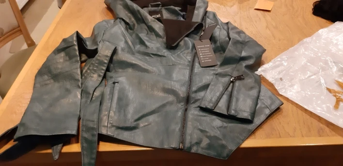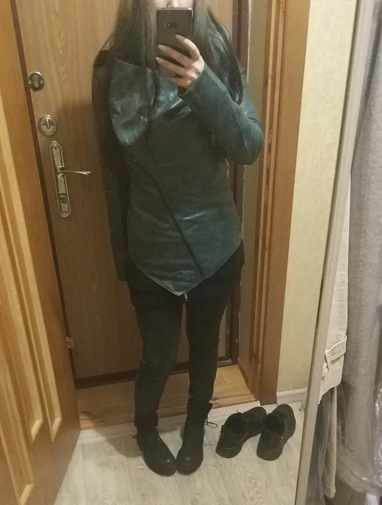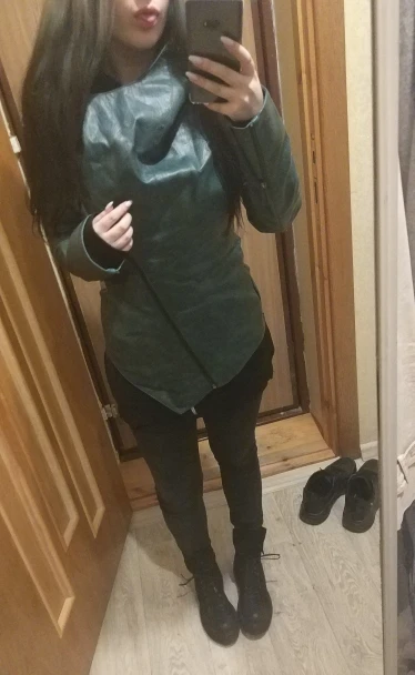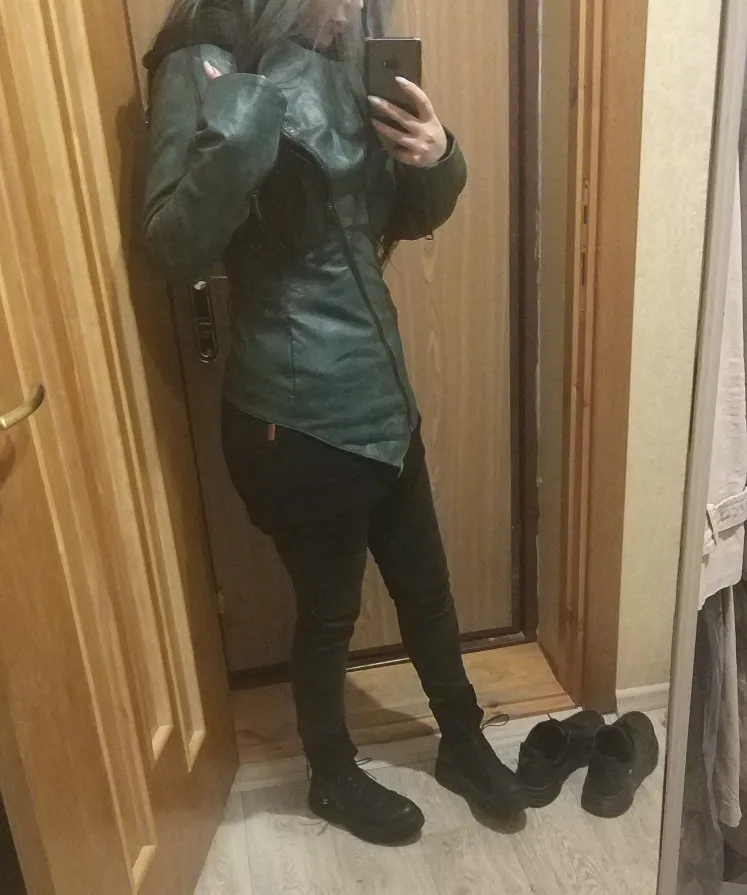 Куртка классная, маломерка 3xl,на российский 48-50,кожа хорошая, хоть и кожзам, в руках чуть усковата, покупала за 2.100,доставка 3 недели, упаковано хорошо, пришла не мятая, не воняет, подругам понравилось, заказала такую же для подруги, цвет брала голубовато зеленный