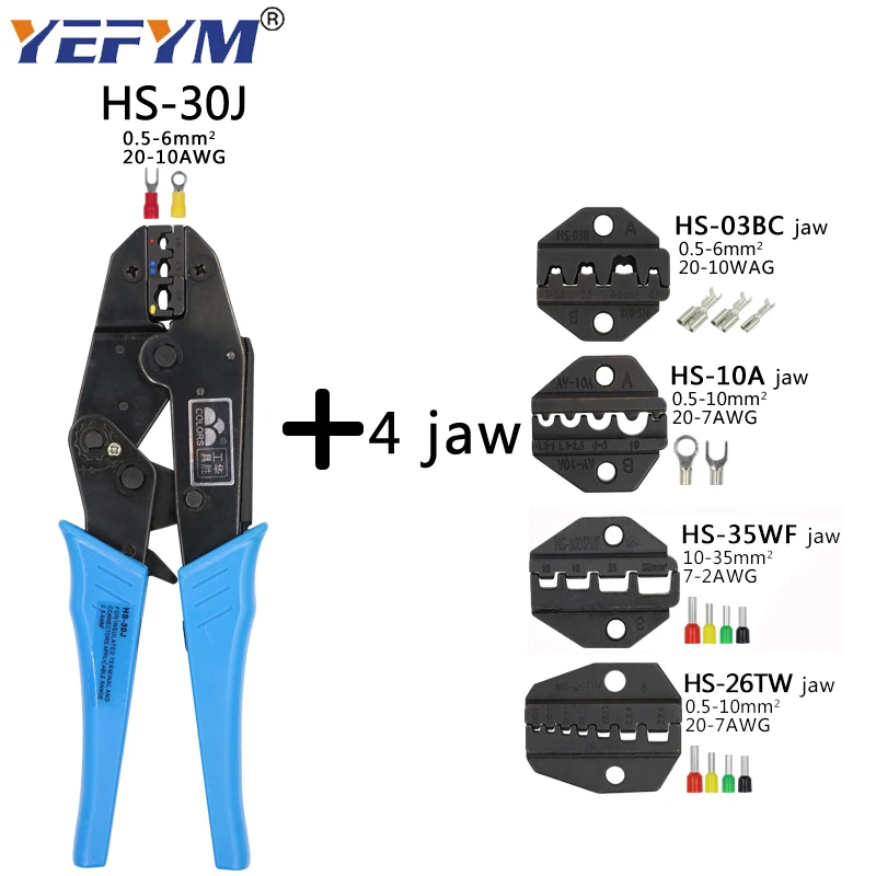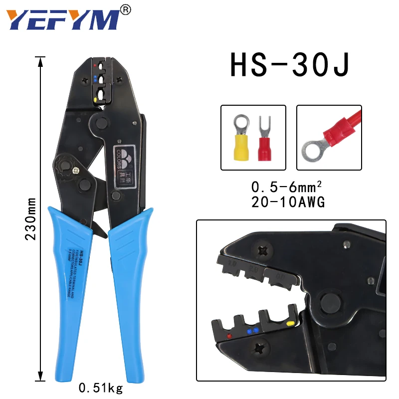 Многофункциональный обжимной инструмент с храповым механизмом, профессиональный обжимной инструмент 0,5-35 мм2, обжимные плоскогубцы, HS-30J, ручной инструмент