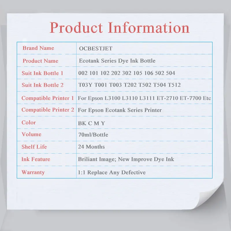 103 заправляемые чернила для принтера Epson EcoTank L1110 L3100 L3110 L3111 L3116 L3150 L3151 L3156 L3160 L5190