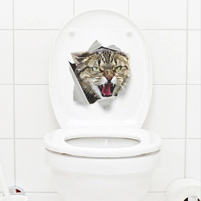 Наклейки на стену в виде милого кота для ванной комнаты, туалета, украшения для детской комнаты, домашний декор, Настенная роспись для автомобиля, художественные наклейки
