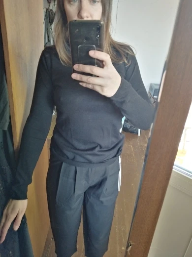 Прекрасно понимаю тех, кто писал у меня уже 2, закажу ещё :) водолазка приятная к телу и комфортная в носке, сшито как и все вещи данного брэнда безупречно, все швы ровные, бирки на месте, состав написан, лишних запахов нет. Присоединяюсь к девушкам :) и закажу ещё такую же в другом цвете:) хорошая база.