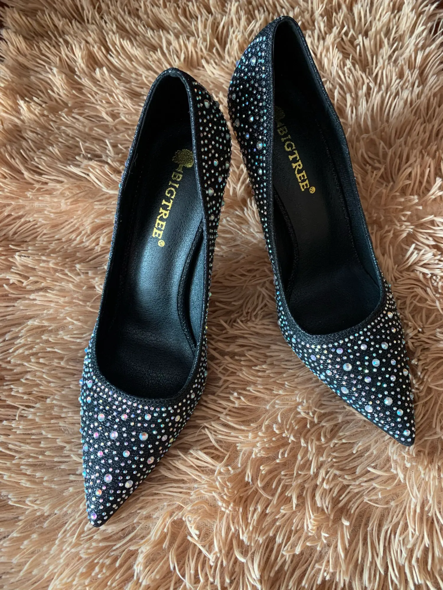 Спасибо большое продавцу!!! Туфли супер красивые. Стразы блестят !!! Мой размер 37.5(24.5) заказала на размер побольше 40( 25см )немного свободные но за счёт жестковатой пятки меньше бы были тесноваты!!! Продавец положил запасные набойки. До Ленинградской области посылка пришла за 15 дней!!! Закажу туфельки ещё в другом цвете. Спасибо!!!)