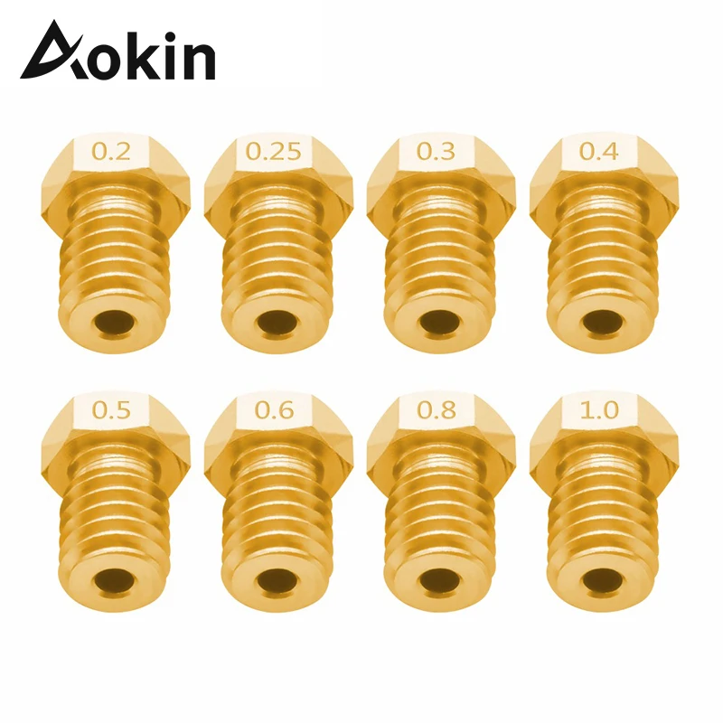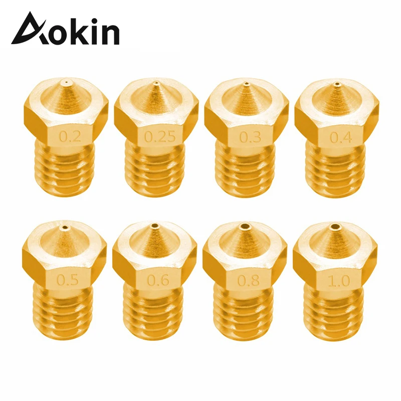 Насадка Aokin для экструдера для 3D принтера, для E3D V5 V6 M6, Резьбовая насадка 0,25 0,3 0,4 0,5 0,6 0,8 1,0 мм для нити 1,75 мм 3,0 мм