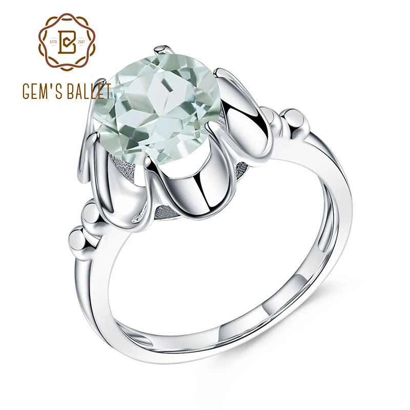 Женское кольцо с драгоценным камнем GEM'S ball, кольцо на палец с натуральным зеленым Помолвочное кольцо с аметистом 2,73 карата из 925 пробы и серебра