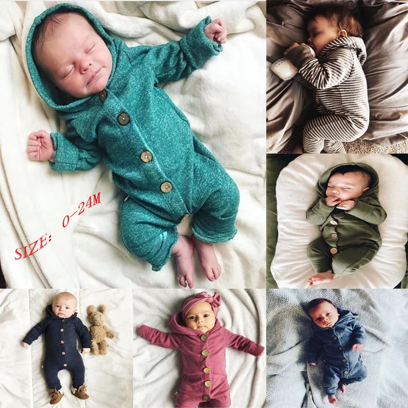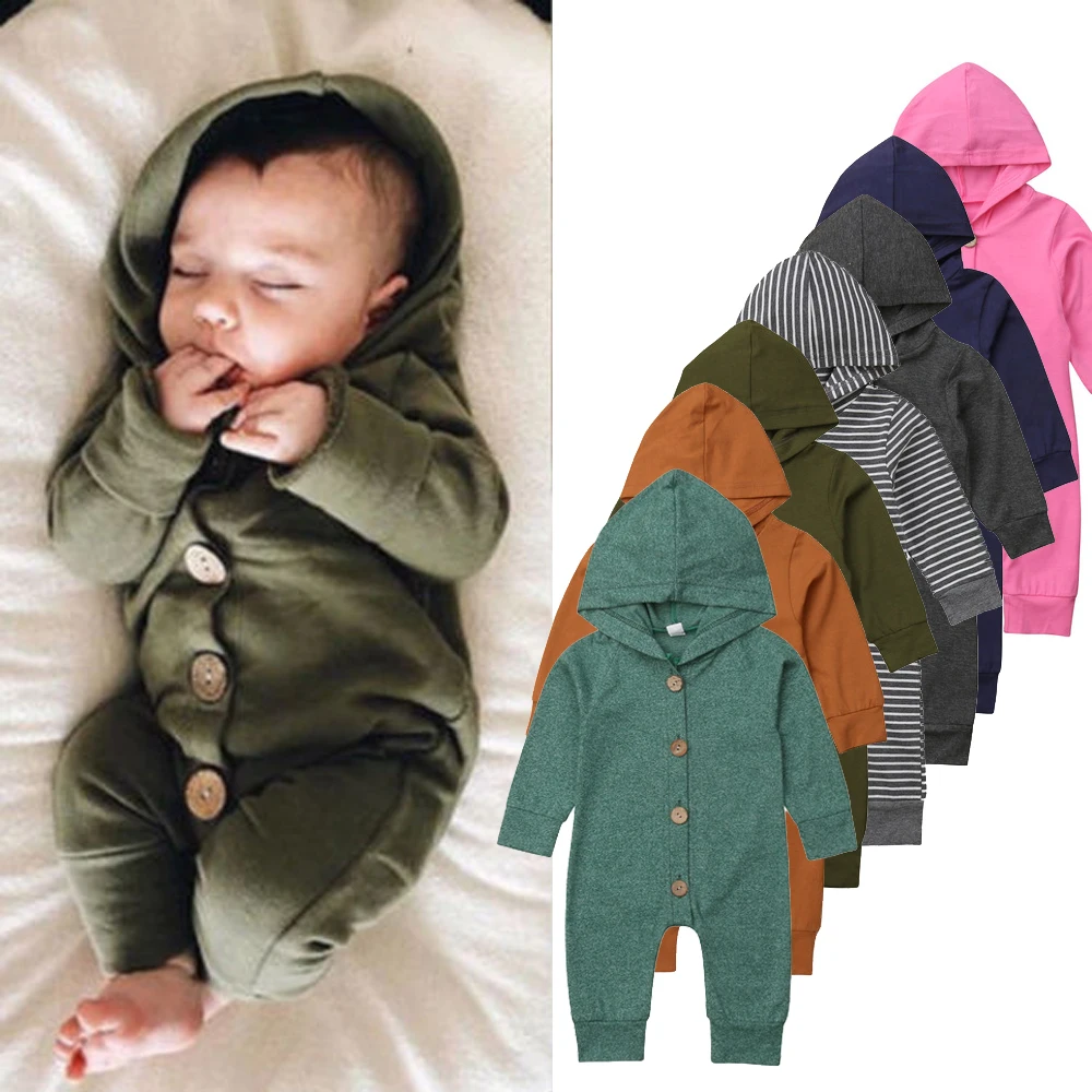 Комбинезон с капюшоном для детей 0-24 месяцев, комбинезон для младенцев мальчиков девочек, хлопок, однотонный