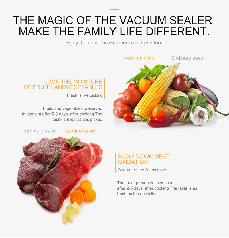 После очень отличного опыта, он фиксирует функцию Воздухозабора с помощью специальных тепловых мешков и обычных мешков без вытягивания (поставляется внутри термопакета в картонном рулоне) упаковка продавца очень отличная, и я получил в течение трех недель