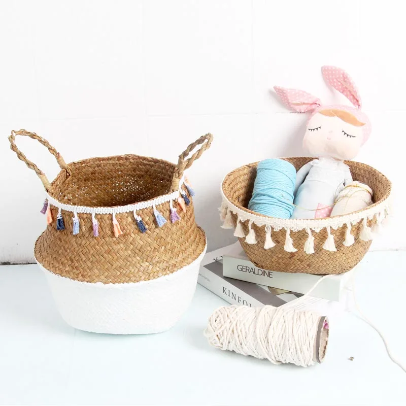 Декоративная корзина для хранения макраме, плетеная декоративная корзина из ротанга, держатель для садового цветочного горшка, домашний корзинка-органайзер Boho, декоративная корзина