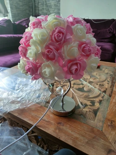 Абажур был смят. Убедитесь, что вы покупаете эту лампу, у вас есть клей на руке. Цветы очень клеятся на hap. У меня было 4 сразу, когда я открывал свою посылку. Более месяца для доставки. Не очень впечатлен, но спасибо за лампу.