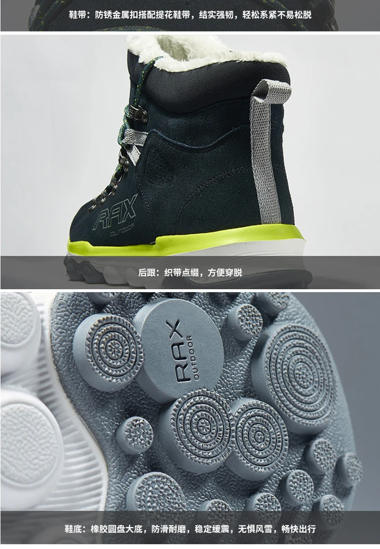 Мужские и женские кроссовки RAX, зимние легкие ботинки с плюшевой подкладкой для туризма и походов, 2018