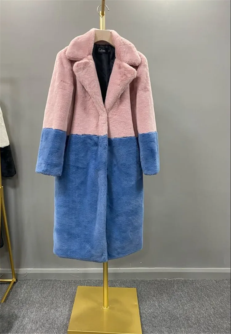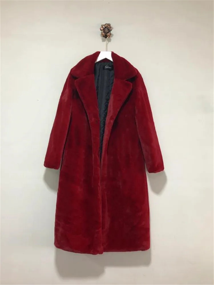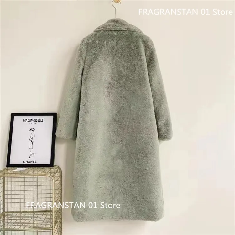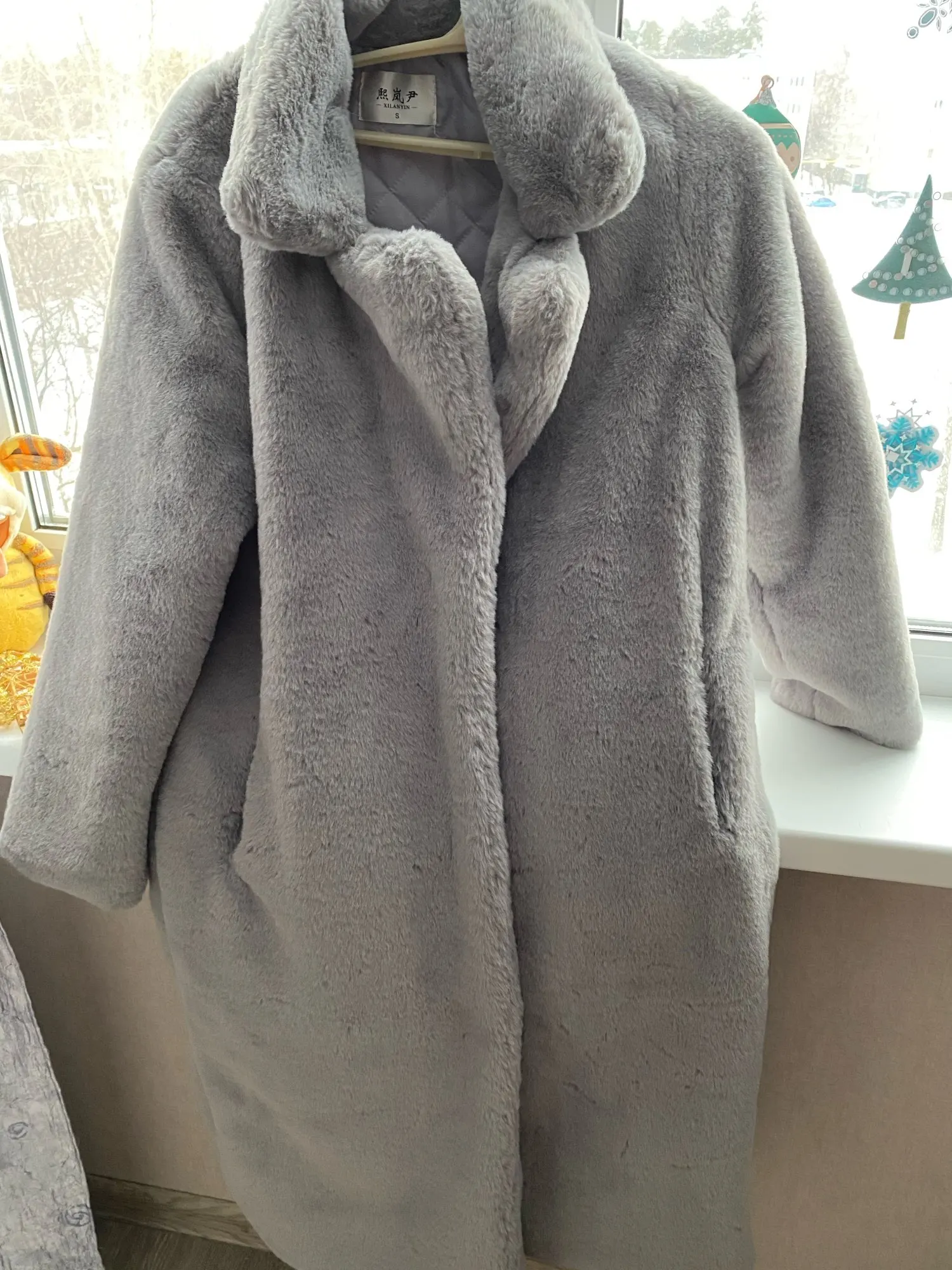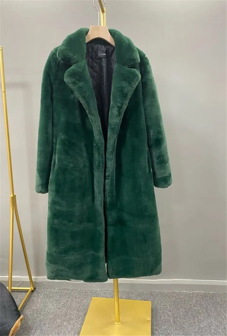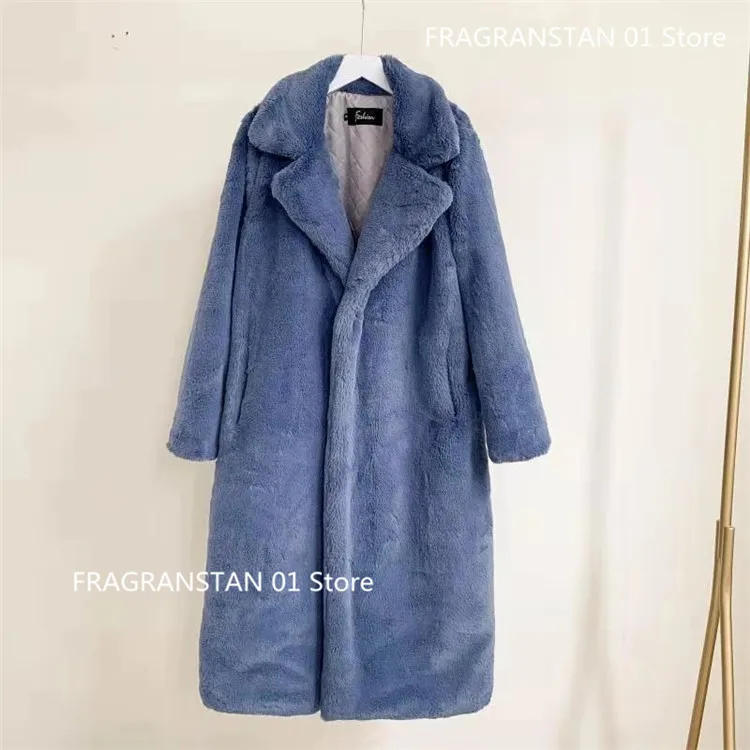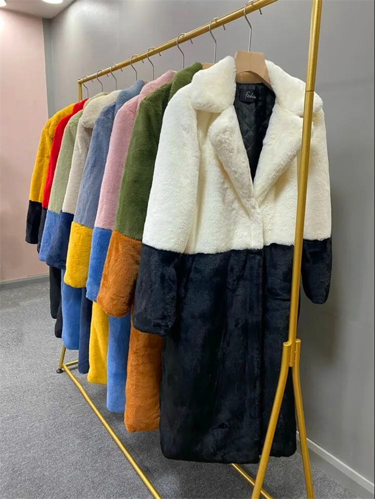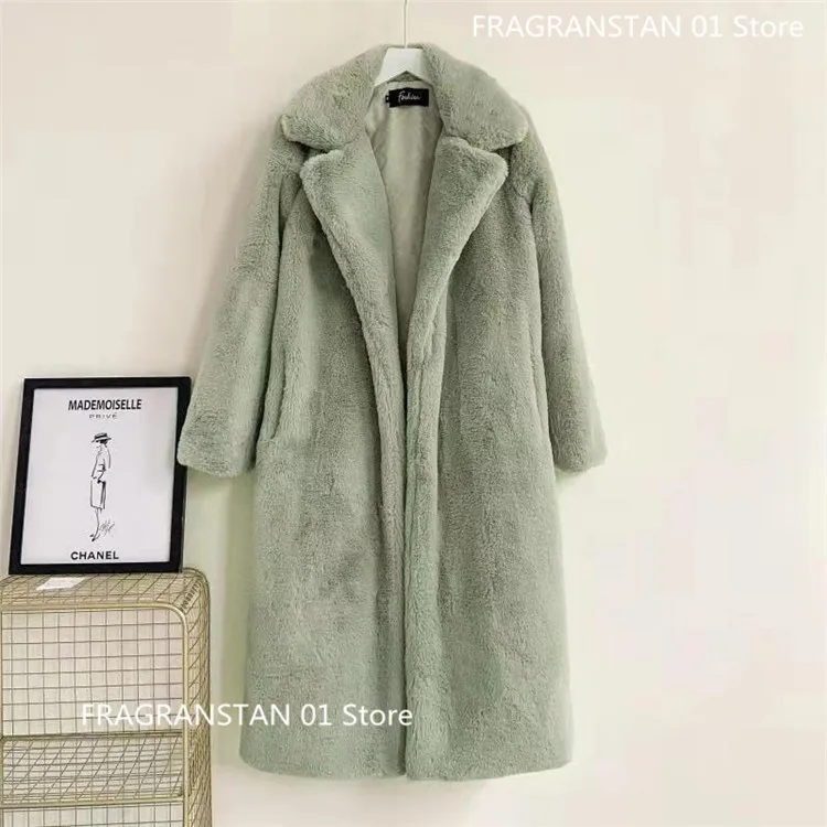 Женская длинная шуба из искусственного кроличьего меха, толстая теплая плюшевая Шуба с лацканами, зимний сезон 2022